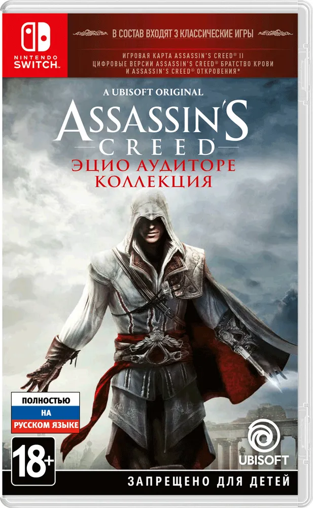 Узнайте полную историю легендарного Эцио Аудиторе да Фиренце. В комплект входят три игры: Assassin’s Creed II (игровая карта), Assassin’s Creed Братство крови (цифровая версия) и Assassin’s Creed Откровения (цифровая версия) (все одиночные кампании и дополнения), а также два короткометражных фильма. Вам предстоит сыграть за знаменитого предводителя ассасинов из Италии XV века, отомстить за предательство семьи и узнать правду о Кредо в заключительном задании. На Nintendo Switch доступны дополнительные функции, такие как вибрация HD и др.